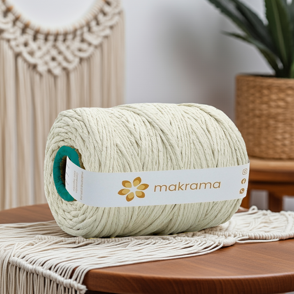 Si buscas una textura muy suave, éste es el material correcto para tus trabajos de Macramé, la hilaza de 3 mm. Es una de las favoritas por su ligereza y facilidad al anudar. Es ideal para cualquier tipo de trabajo al estar elaborada a un solo cabo.